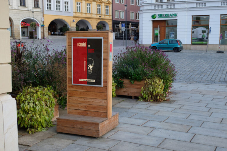 Reflexe nad současnou mediální agendou doplněná velkoformátovými propagandistickými plakáty.