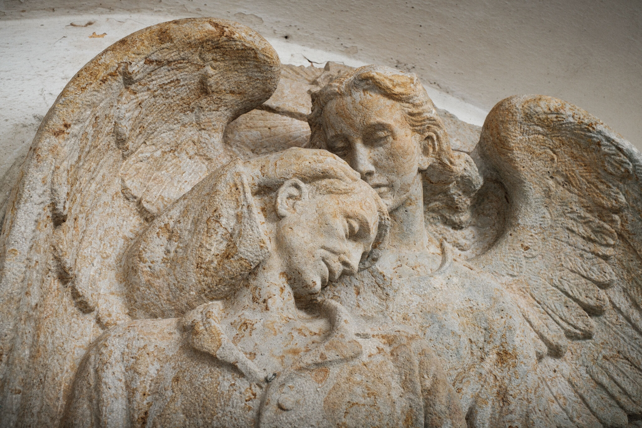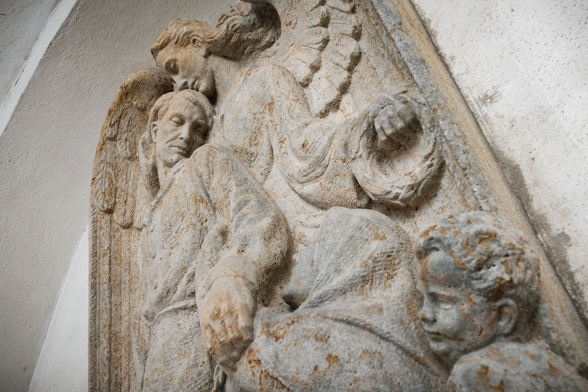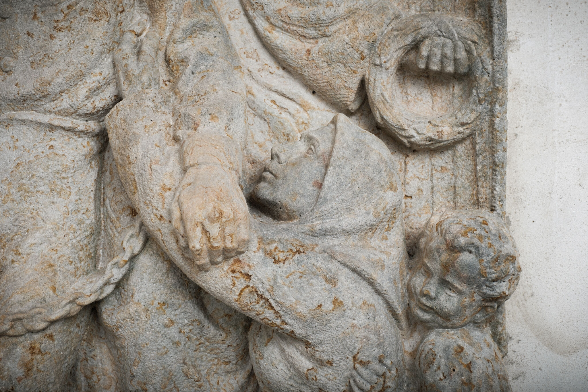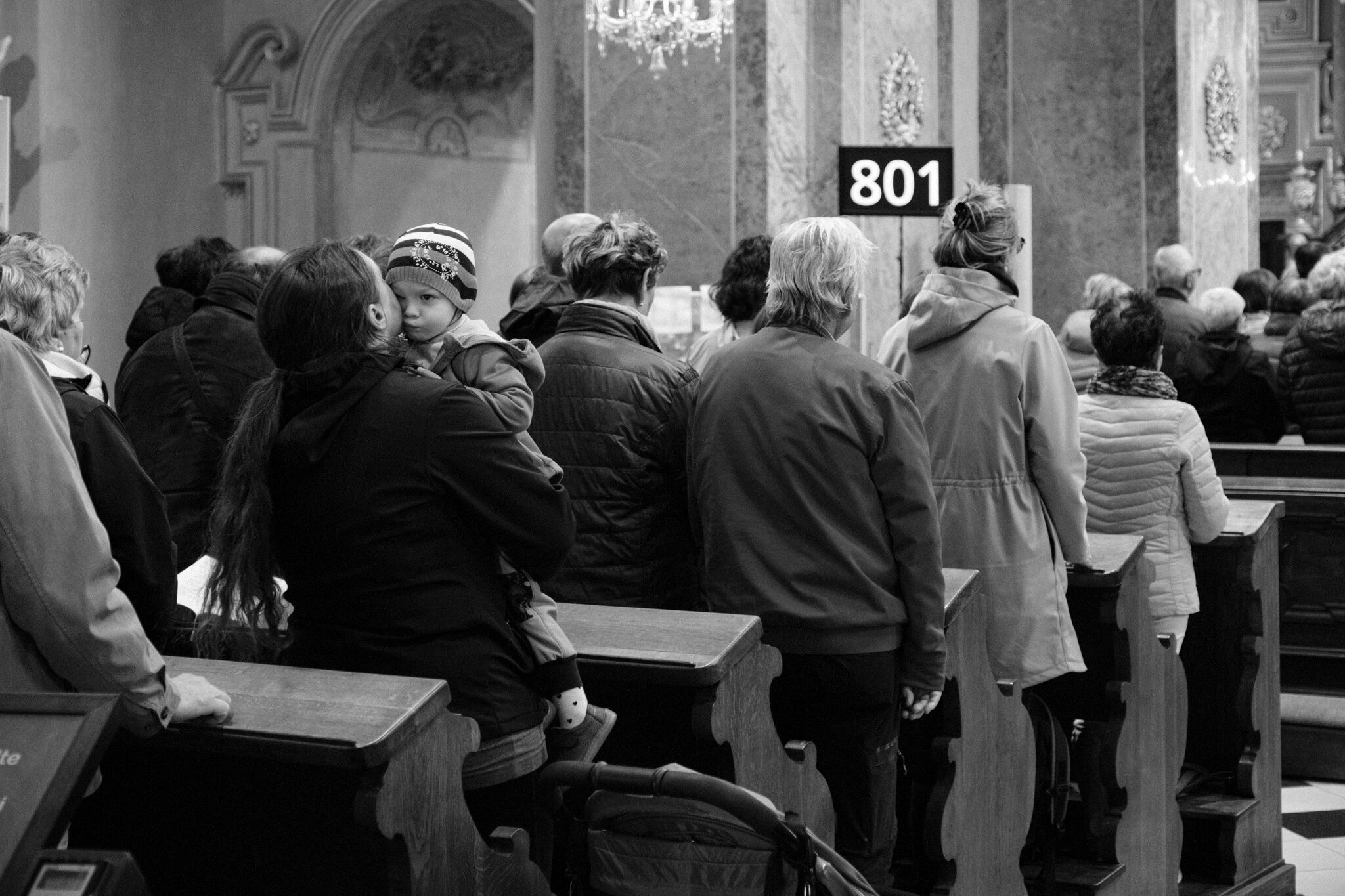 Žehnání obnoveného památníku hrdinům válek v ambitu baziliky na Sv. Kopečku. Památník je dílem sochaře Julia Pelikána.